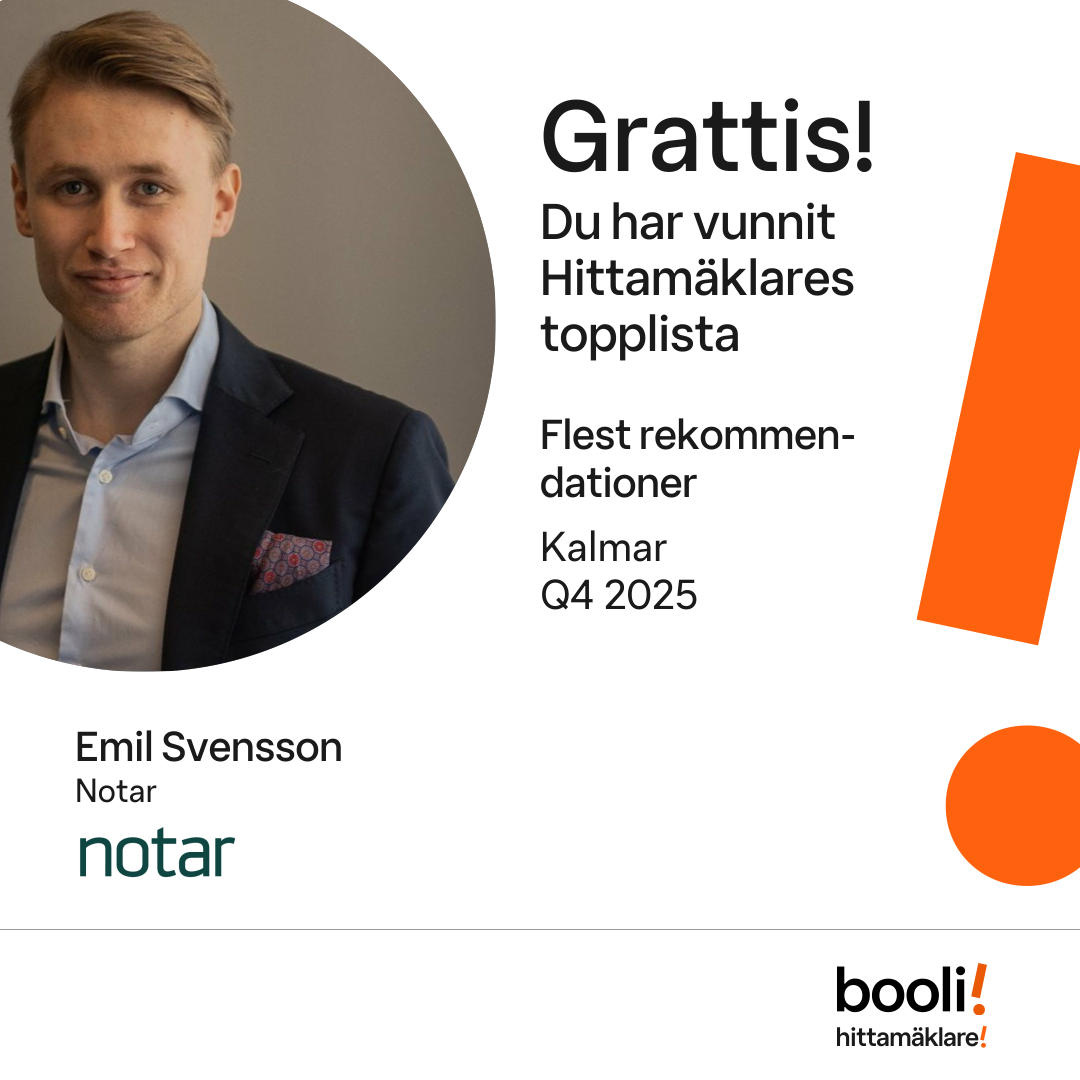 Statistik för publicerade bostäder, försäljningar och omdömen baseras på data från Booli och Hittamäklare. Statistiken för försäljningar avser inrapporterade och verifierade slutpriser från mäklare eller av Booli inhämtade och verifierade slutpriser. Statistiken för publicerade bostäder baseras på information som publicerats på Booli.se. Statistik för omdömen och rekommendationer baseras på omdömen från säljare som lämnats via Booli och Hittamäklare.