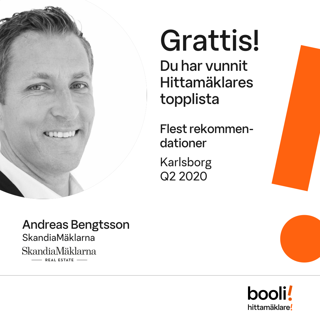 Statistik för publicerade bostäder, försäljningar och omdömen baseras på data från Booli och Hittamäklare. Statistiken för försäljningar avser inrapporterade och verifierade slutpriser från mäklare eller av Booli inhämtade och verifierade slutpriser. Statistiken för publicerade bostäder baseras på information som publicerats på Booli.se. Statistik för omdömen och rekommendationer baseras på omdömen från säljare som lämnats via Booli och Hittamäklare.