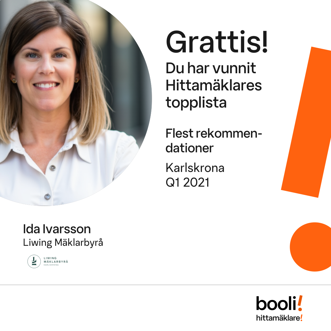 Mäklarna med flest rekommendationer i Karlskrona första kvartalet 2021 enligt vår statistik. Publicerad 2021-04-06.