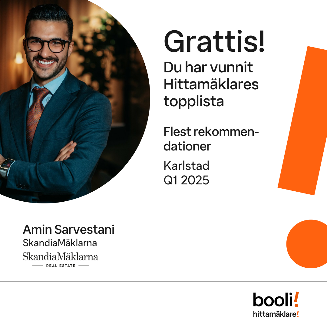 Statistik för publicerade bostäder, försäljningar och omdömen baseras på data från Booli och Hittamäklare. Statistiken för försäljningar avser inrapporterade och verifierade slutpriser från mäklare eller av Booli inhämtade och verifierade slutpriser. Statistiken för publicerade bostäder baseras på information som publicerats på Booli.se. Statistik för omdömen och rekommendationer baseras på omdömen från säljare som lämnats via Booli och Hittamäklare.