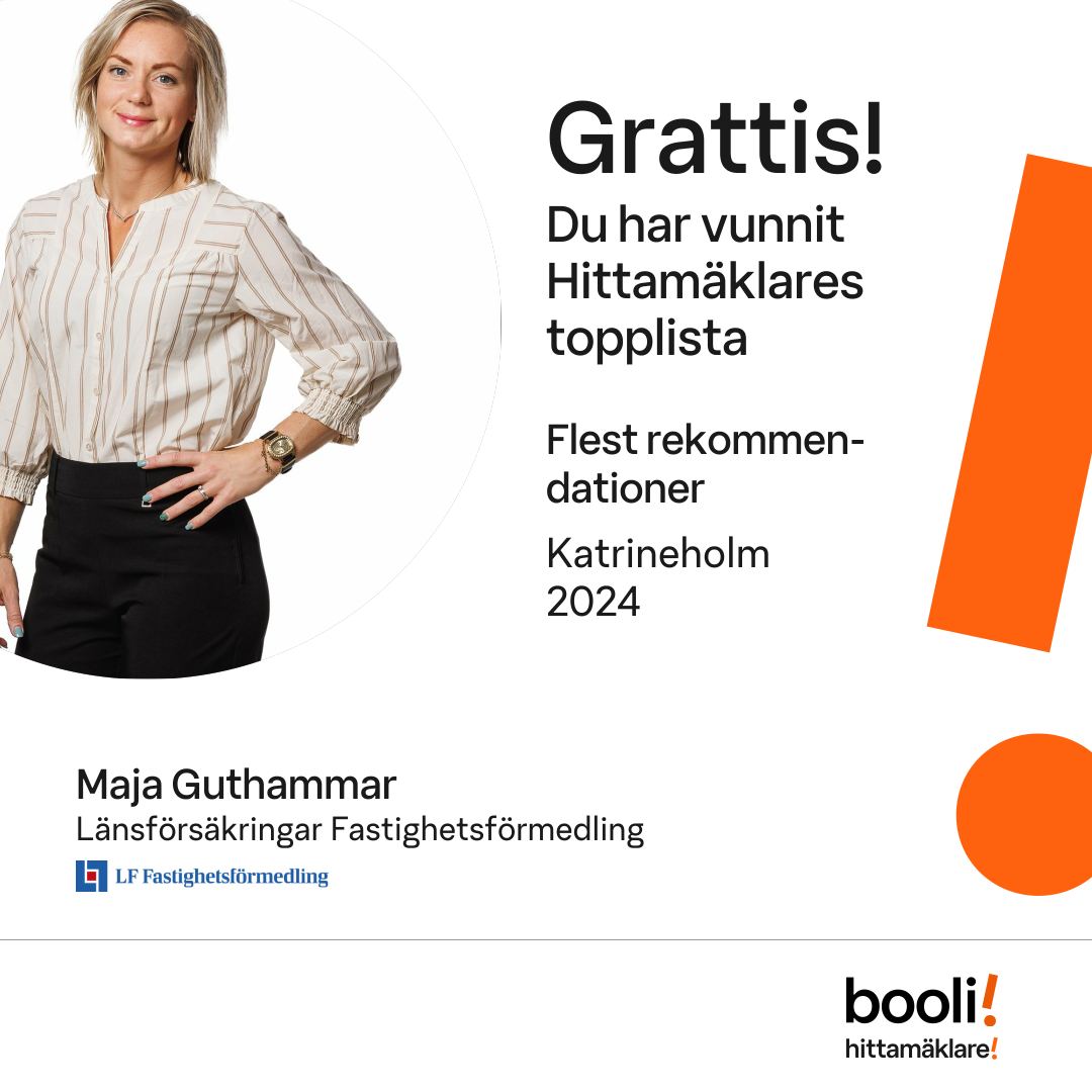 Statistik för publicerade bostäder, försäljningar och omdömen baseras på data från Booli och Hittamäklare. Statistiken för försäljningar avser inrapporterade och verifierade slutpriser från mäklare eller av Booli inhämtade och verifierade slutpriser. Statistiken för publicerade bostäder baseras på information som publicerats på Booli.se. Statistik för omdömen och rekommendationer baseras på omdömen från säljare som lämnats via Booli och Hittamäklare.