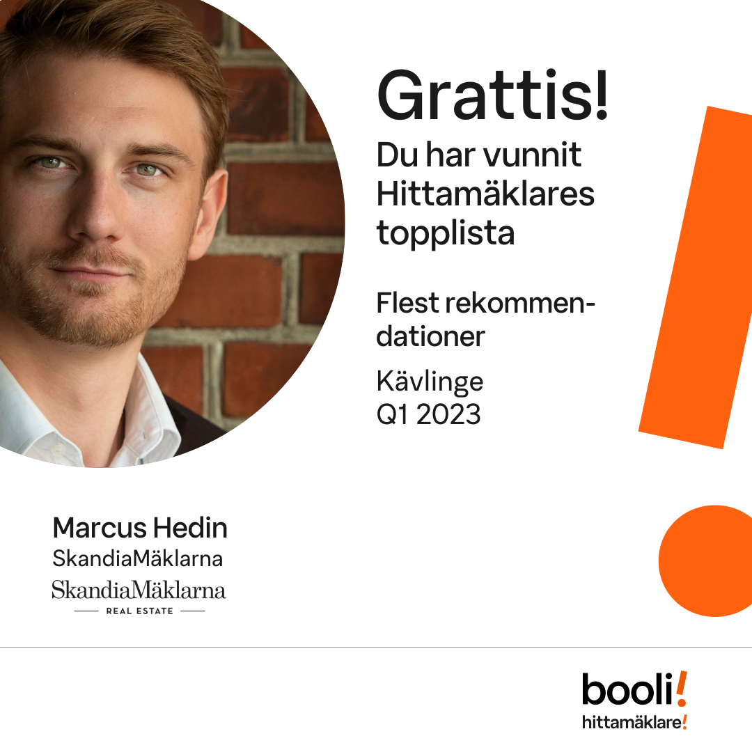 Statistik för publicerade bostäder, försäljningar och omdömen baseras på data från Booli och Hittamäklare. Statistiken för försäljningar avser inrapporterade och verifierade slutpriser från mäklare eller av Booli inhämtade och verifierade slutpriser. Statistiken för publicerade bostäder baseras på information som publicerats på Booli.se. Statistik för omdömen och rekommendationer baseras på omdömen från säljare som lämnats via Booli och Hittamäklare.