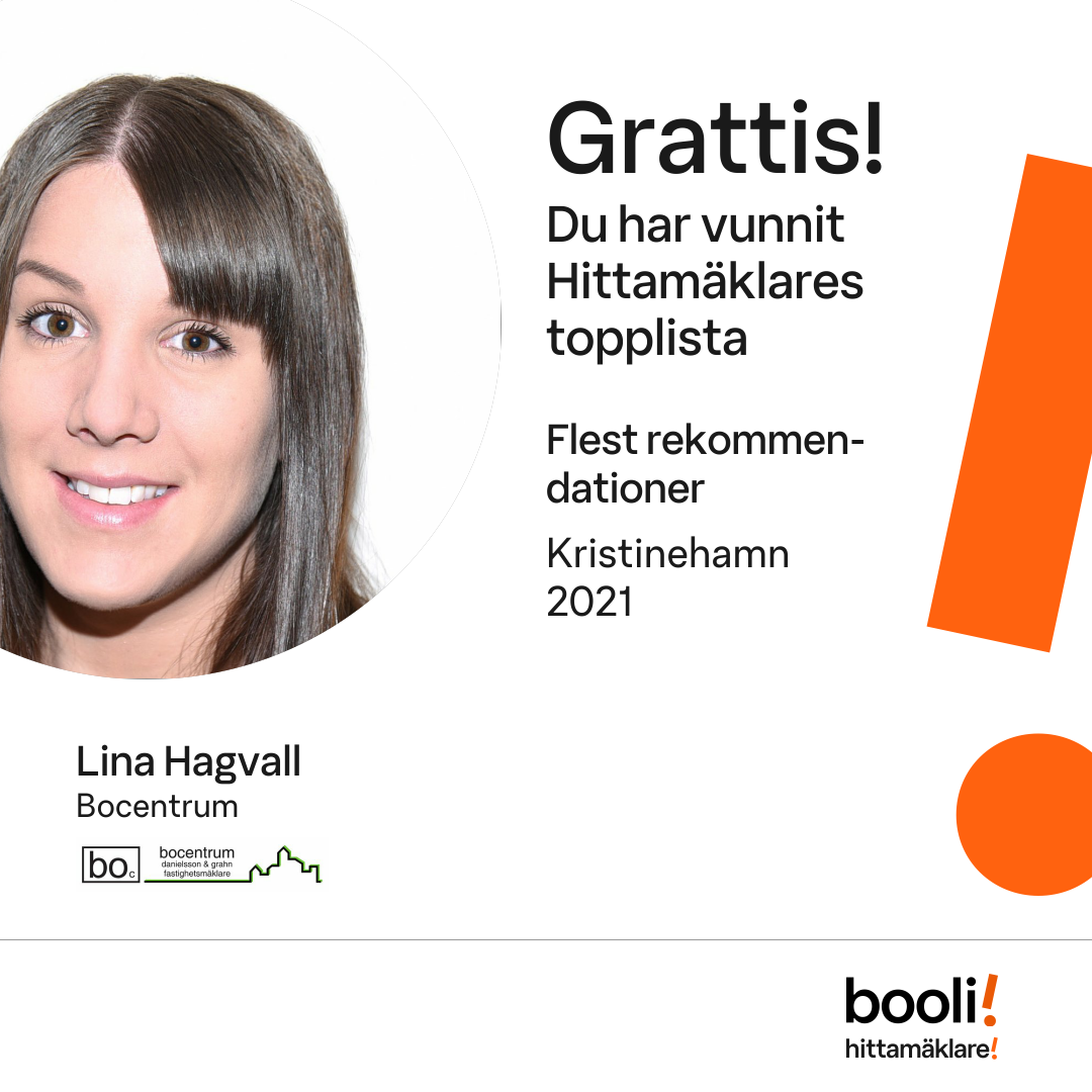 Statistik för publicerade bostäder, försäljningar och omdömen baseras på data från Booli och Hittamäklare. Statistiken för försäljningar avser inrapporterade och verifierade slutpriser från mäklare eller av Booli inhämtade och verifierade slutpriser. Statistiken för publicerade bostäder baseras på information som publicerats på Booli.se. Statistik för omdömen och rekommendationer baseras på omdömen från säljare som lämnats via Booli och Hittamäklare.