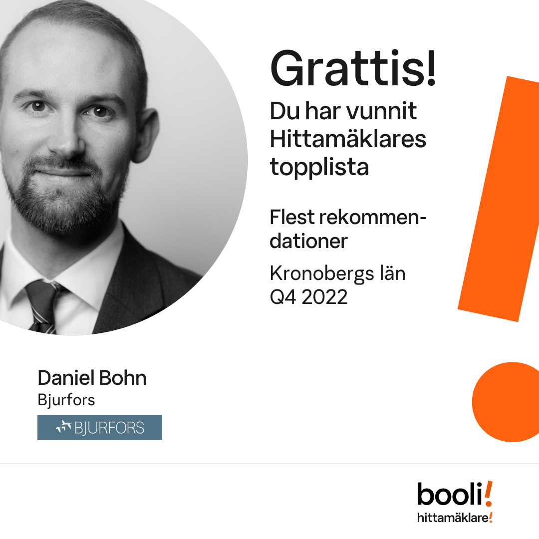 Statistik för publicerade bostäder, försäljningar och omdömen baseras på data från Booli och Hittamäklare. Statistiken för försäljningar avser inrapporterade och verifierade slutpriser från mäklare eller av Booli inhämtade och verifierade slutpriser. Statistiken för publicerade bostäder baseras på information som publicerats på Booli.se. Statistik för omdömen och rekommendationer baseras på omdömen från säljare som lämnats via Booli och Hittamäklare.
