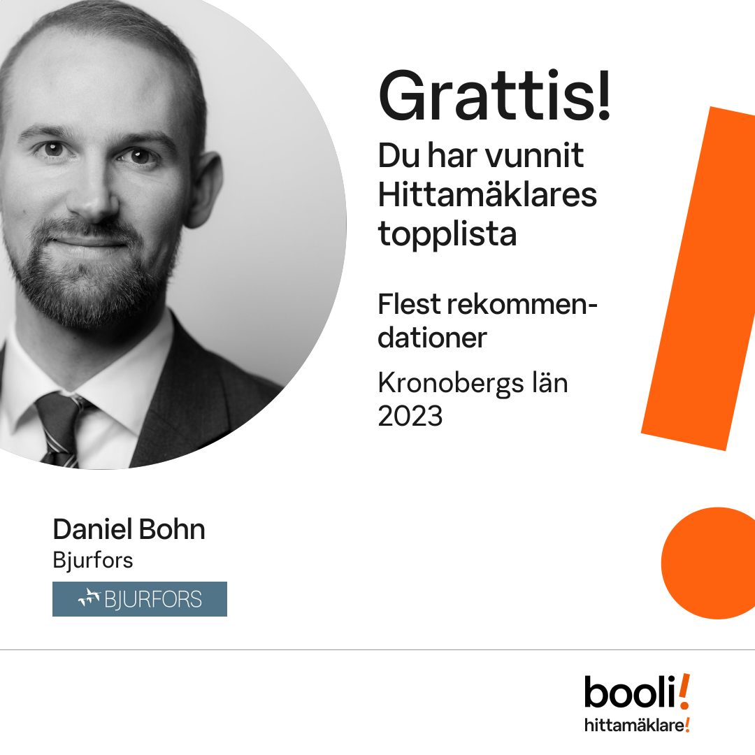 Statistik för publicerade bostäder, försäljningar och omdömen baseras på data från Booli och Hittamäklare. Statistiken för försäljningar avser inrapporterade och verifierade slutpriser från mäklare eller av Booli inhämtade och verifierade slutpriser. Statistiken för publicerade bostäder baseras på information som publicerats på Booli.se. Statistik för omdömen och rekommendationer baseras på omdömen från säljare som lämnats via Booli och Hittamäklare.