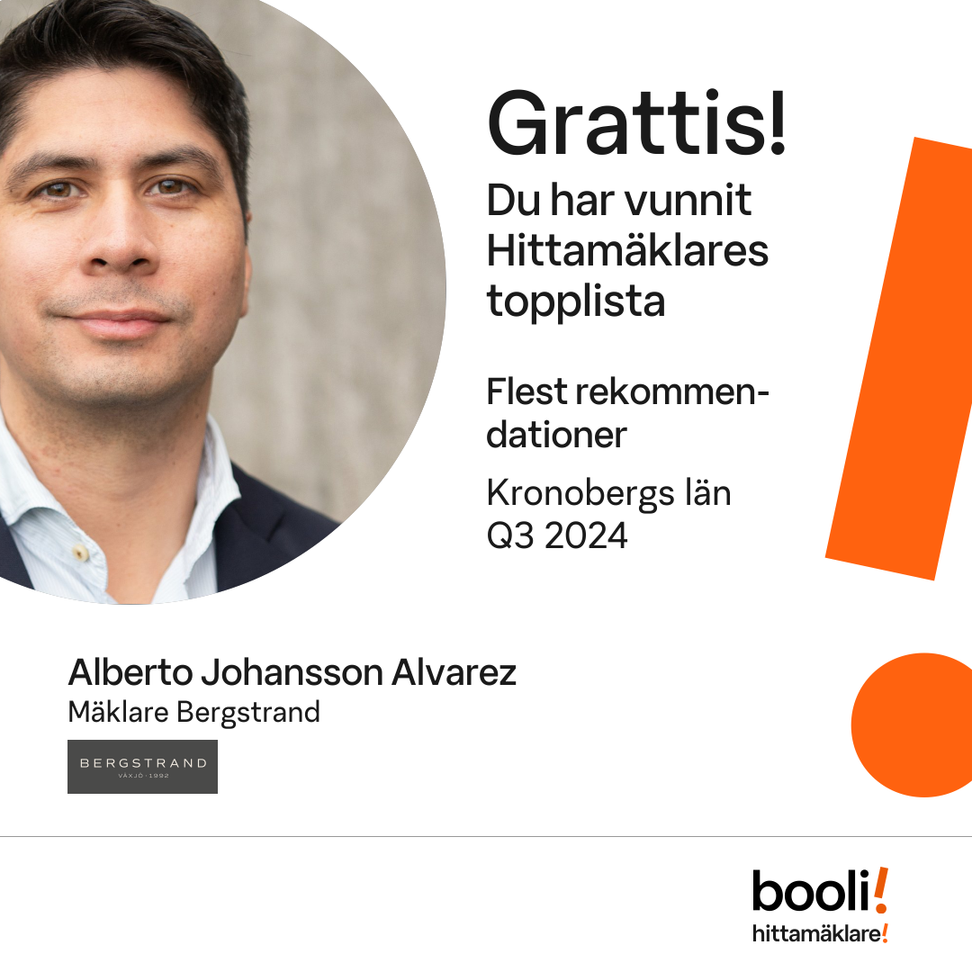 Statistik för publicerade bostäder, försäljningar och omdömen baseras på data från Booli och Hittamäklare. Statistiken för försäljningar avser inrapporterade och verifierade slutpriser från mäklare eller av Booli inhämtade och verifierade slutpriser. Statistiken för publicerade bostäder baseras på information som publicerats på Booli.se. Statistik för omdömen och rekommendationer baseras på omdömen från säljare som lämnats via Booli och Hittamäklare.