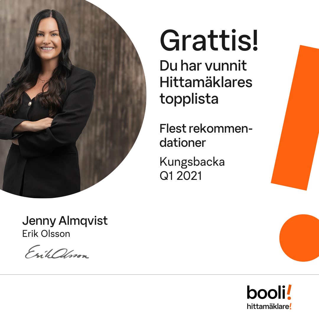 Mäklarna med flest rekommendationer i Kungsbacka första kvartalet 2021 enligt vår statistik. Publicerad 2021-04-06.