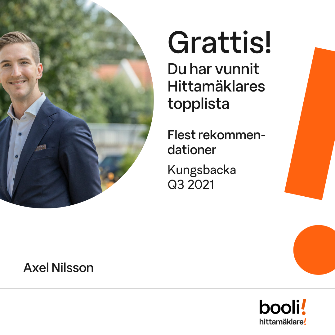 Statistik för publicerade bostäder, försäljningar och omdömen baseras på data från Booli och Hittamäklare. Statistiken för försäljningar avser inrapporterade och verifierade slutpriser från mäklare eller av Booli inhämtade och verifierade slutpriser. Statistiken för publicerade bostäder baseras på information som publicerats på Booli.se. Statistik för omdömen och rekommendationer baseras på omdömen från säljare som lämnats via Booli och Hittamäklare.