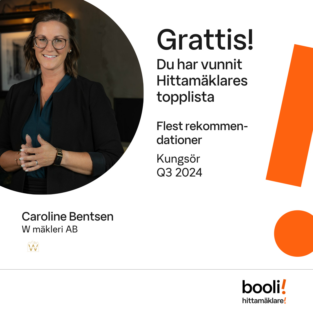 Statistik för publicerade bostäder, försäljningar och omdömen baseras på data från Booli och Hittamäklare. Statistiken för försäljningar avser inrapporterade och verifierade slutpriser från mäklare eller av Booli inhämtade och verifierade slutpriser. Statistiken för publicerade bostäder baseras på information som publicerats på Booli.se. Statistik för omdömen och rekommendationer baseras på omdömen från säljare som lämnats via Booli och Hittamäklare.