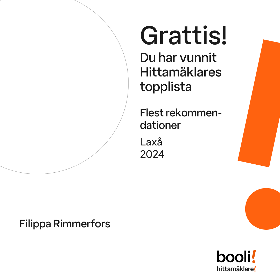 Statistik för publicerade bostäder, försäljningar och omdömen baseras på data från Booli och Hittamäklare. Statistiken för försäljningar avser inrapporterade och verifierade slutpriser från mäklare eller av Booli inhämtade och verifierade slutpriser. Statistiken för publicerade bostäder baseras på information som publicerats på Booli.se. Statistik för omdömen och rekommendationer baseras på omdömen från säljare som lämnats via Booli och Hittamäklare.