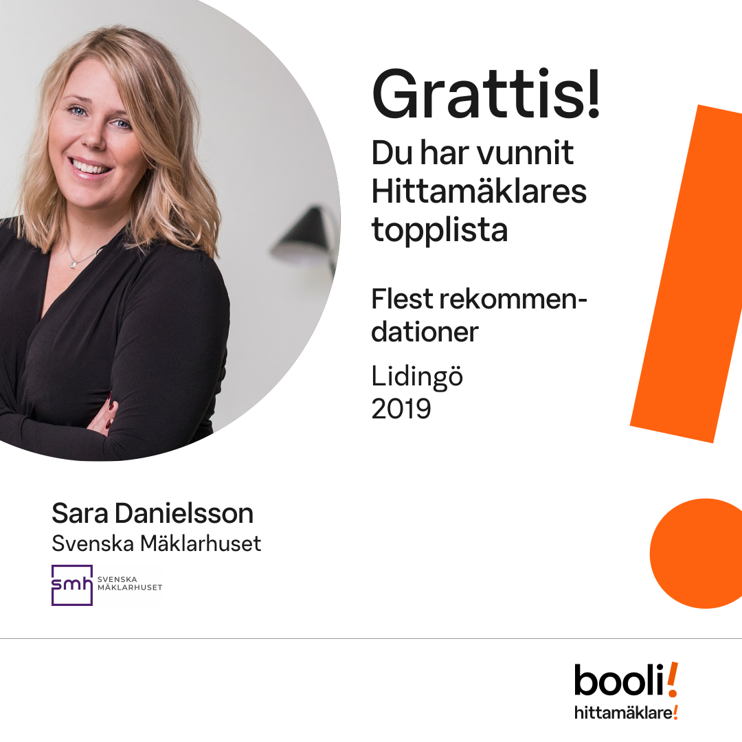 Statistik för publicerade bostäder, försäljningar och omdömen baseras på data från Booli och Hittamäklare. Statistiken för försäljningar avser inrapporterade och verifierade slutpriser från mäklare eller av Booli inhämtade och verifierade slutpriser. Statistiken för publicerade bostäder baseras på information som publicerats på Booli.se. Statistik för omdömen och rekommendationer baseras på omdömen från säljare som lämnats via Booli och Hittamäklare.