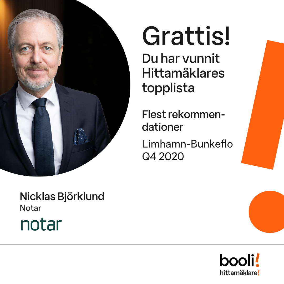 Statistik för publicerade bostäder, försäljningar och omdömen baseras på data från Booli och Hittamäklare. Statistiken för försäljningar avser inrapporterade och verifierade slutpriser från mäklare eller av Booli inhämtade och verifierade slutpriser. Statistiken för publicerade bostäder baseras på information som publicerats på Booli.se. Statistik för omdömen och rekommendationer baseras på omdömen från säljare som lämnats via Booli och Hittamäklare.