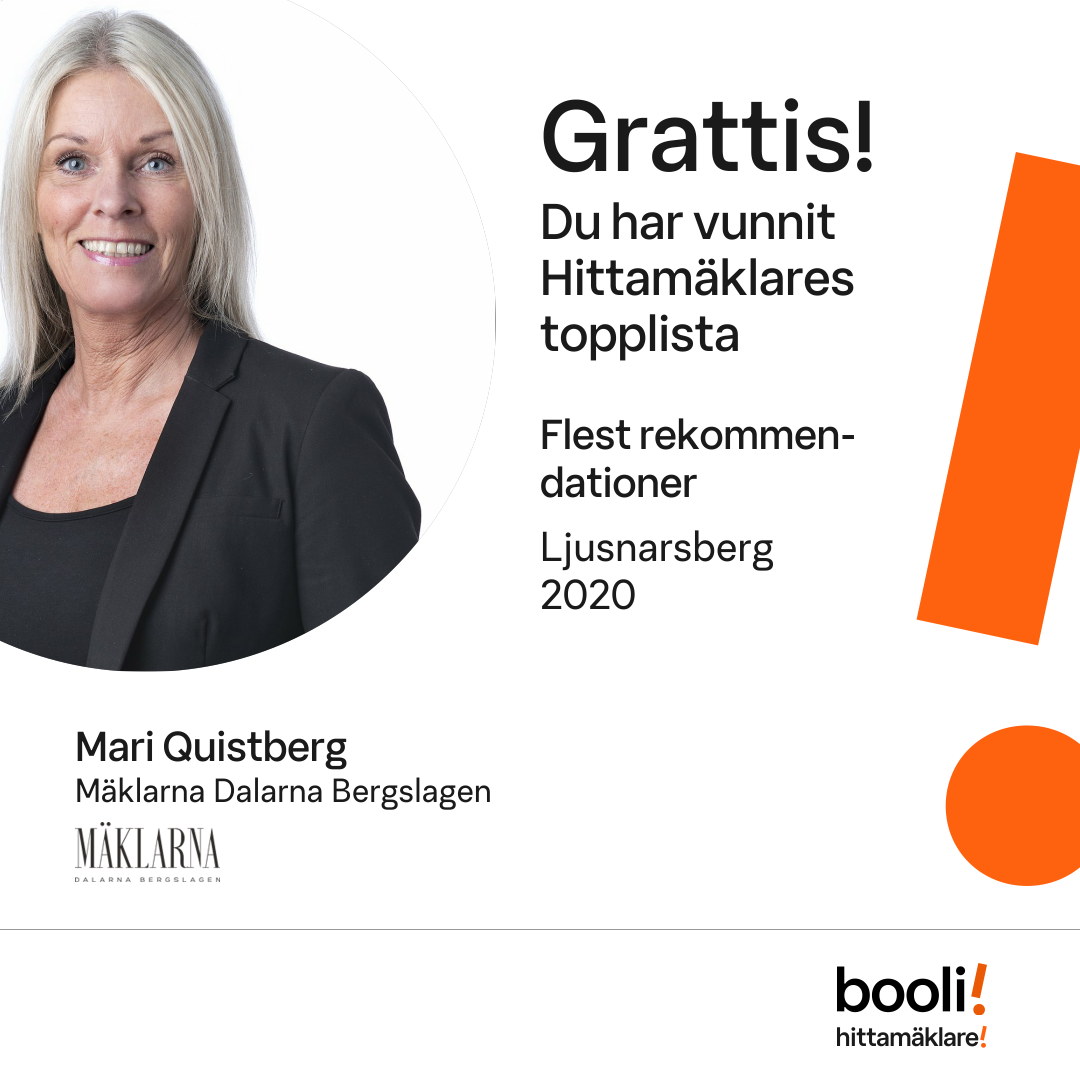 Statistik för publicerade bostäder, försäljningar och omdömen baseras på data från Booli och Hittamäklare. Statistiken för försäljningar avser inrapporterade och verifierade slutpriser från mäklare eller av Booli inhämtade och verifierade slutpriser. Statistiken för publicerade bostäder baseras på information som publicerats på Booli.se. Statistik för omdömen och rekommendationer baseras på omdömen från säljare som lämnats via Booli och Hittamäklare.