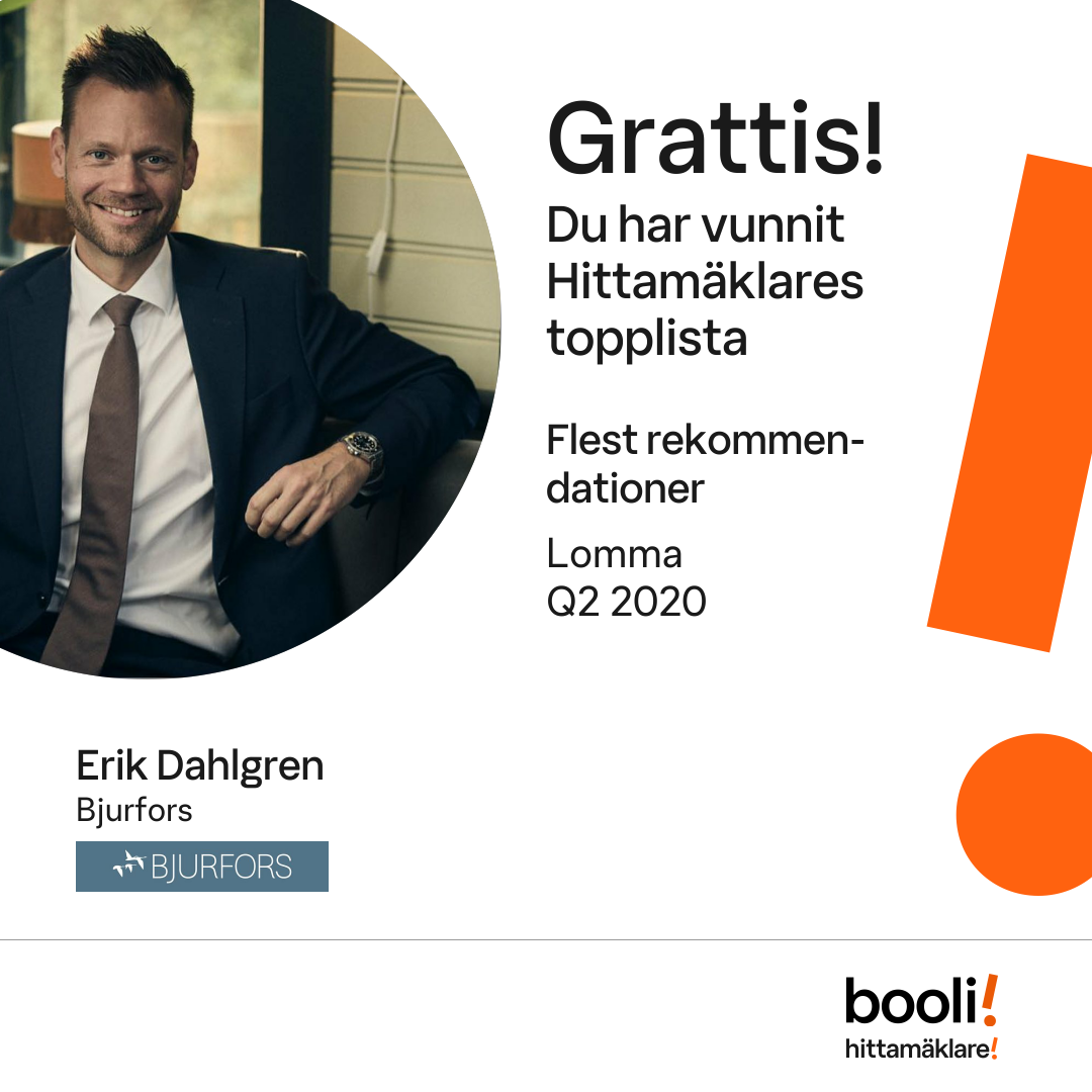 Statistik för publicerade bostäder, försäljningar och omdömen baseras på data från Booli och Hittamäklare. Statistiken för försäljningar avser inrapporterade och verifierade slutpriser från mäklare eller av Booli inhämtade och verifierade slutpriser. Statistiken för publicerade bostäder baseras på information som publicerats på Booli.se. Statistik för omdömen och rekommendationer baseras på omdömen från säljare som lämnats via Booli och Hittamäklare.