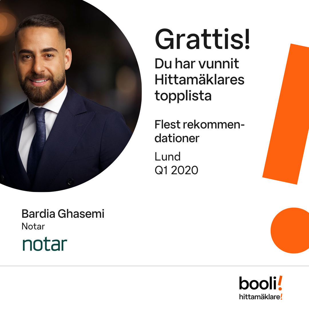 Statistik för publicerade bostäder, försäljningar och omdömen baseras på data från Booli. Statistiken för försäljningar avser inrapporterade och verifierade slutpriser från mäklare eller av Booli inhämtade och verifierade slutpriser. Statistiken för publicerade bostäder baseras på information som publicerats på Booli.se. Statistik för omdömen och rekommendationer baseras på omdömen från säljare som lämnats via Booli.