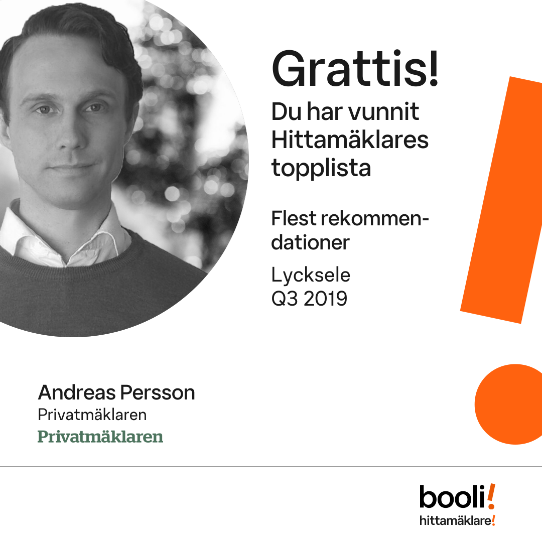 Statistik för publicerade bostäder, försäljningar och omdömen baseras på data från Booli och Hittamäklare. Statistiken för försäljningar avser inrapporterade och verifierade slutpriser från mäklare eller av Booli inhämtade och verifierade slutpriser. Statistiken för publicerade bostäder baseras på information som publicerats på Booli.se. Statistik för omdömen och rekommendationer baseras på omdömen från säljare som lämnats via Booli och Hittamäklare.