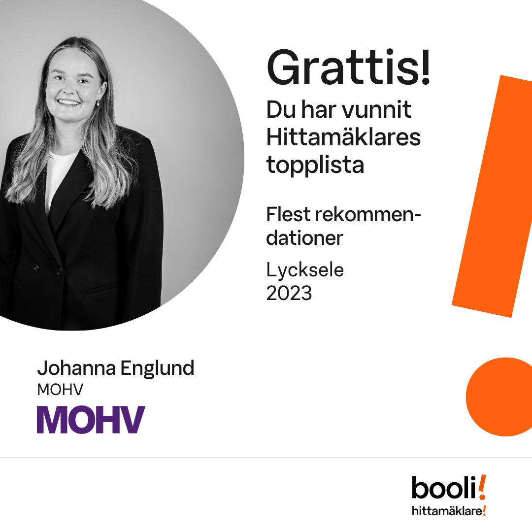 Statistik för publicerade bostäder, försäljningar och omdömen baseras på data från Booli och Hittamäklare. Statistiken för försäljningar avser inrapporterade och verifierade slutpriser från mäklare eller av Booli inhämtade och verifierade slutpriser. Statistiken för publicerade bostäder baseras på information som publicerats på Booli.se. Statistik för omdömen och rekommendationer baseras på omdömen från säljare som lämnats via Booli och Hittamäklare.