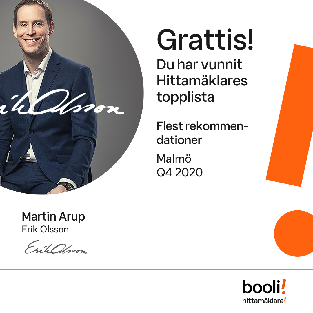 Statistik för publicerade bostäder, försäljningar och omdömen baseras på data från Booli och Hittamäklare. Statistiken för försäljningar avser inrapporterade och verifierade slutpriser från mäklare eller av Booli inhämtade och verifierade slutpriser. Statistiken för publicerade bostäder baseras på information som publicerats på Booli.se. Statistik för omdömen och rekommendationer baseras på omdömen från säljare som lämnats via Booli och Hittamäklare.