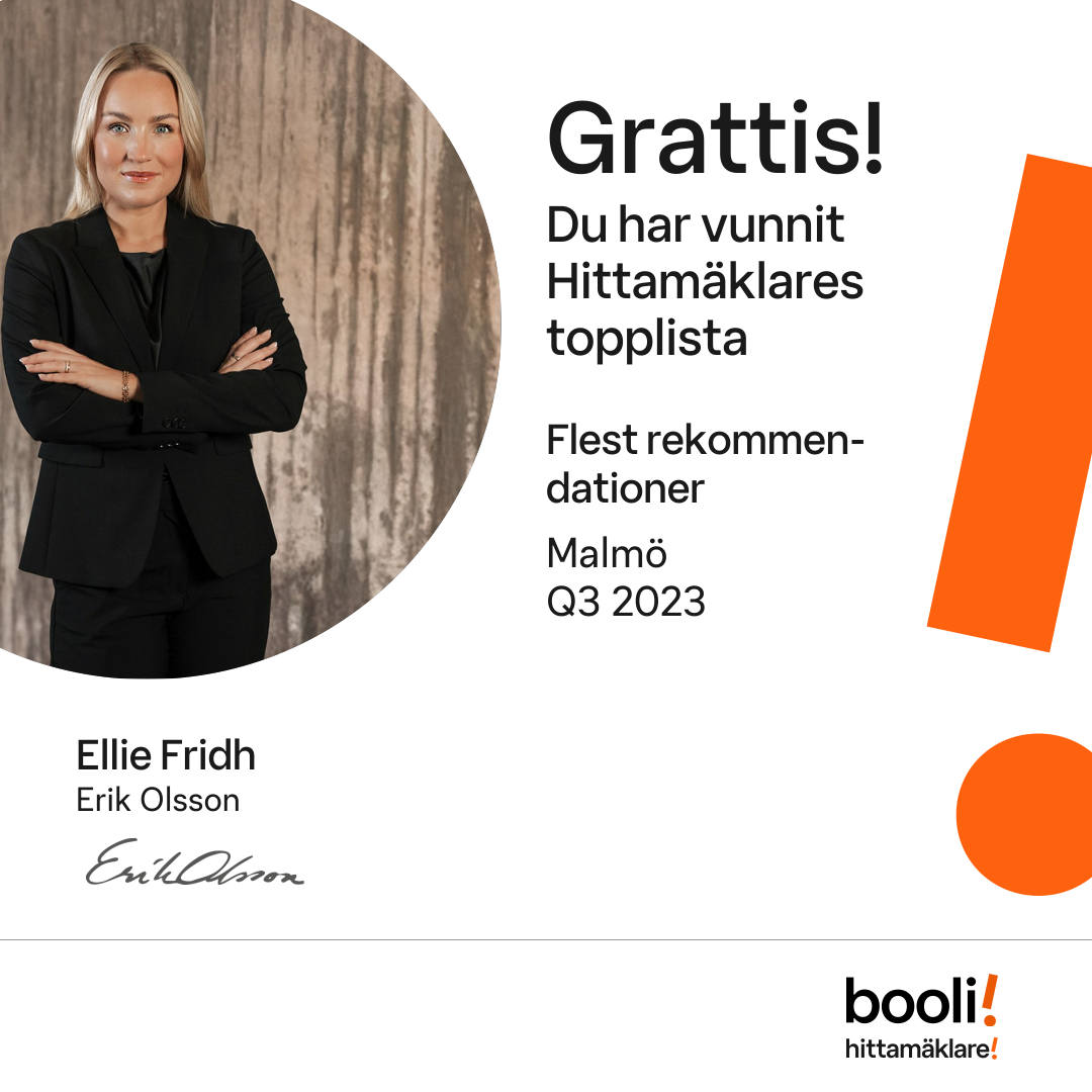 Statistik för publicerade bostäder, försäljningar och omdömen baseras på data från Booli och Hittamäklare. Statistiken för försäljningar avser inrapporterade och verifierade slutpriser från mäklare eller av Booli inhämtade och verifierade slutpriser. Statistiken för publicerade bostäder baseras på information som publicerats på Booli.se. Statistik för omdömen och rekommendationer baseras på omdömen från säljare som lämnats via Booli och Hittamäklare.