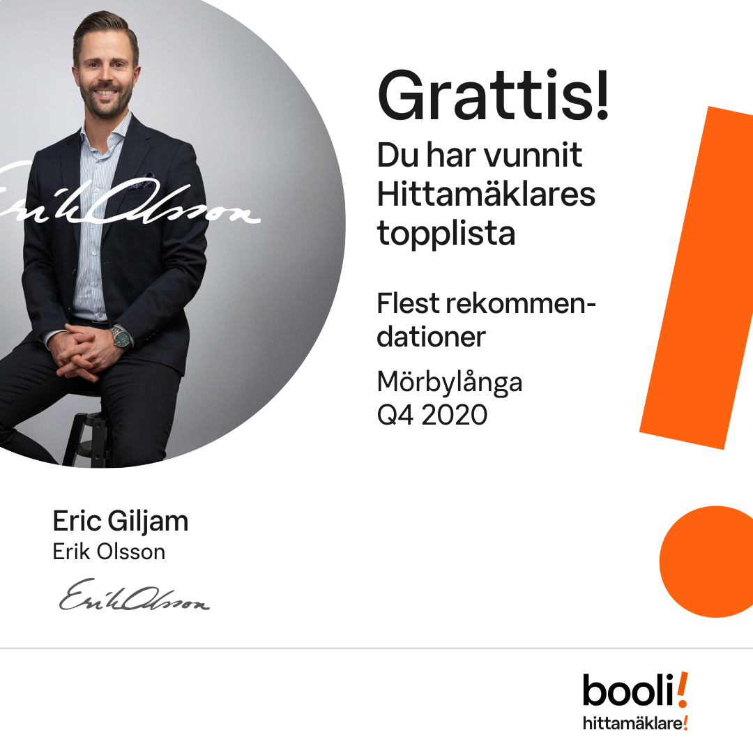 Statistik för publicerade bostäder, försäljningar och omdömen baseras på data från Booli och Hittamäklare. Statistiken för försäljningar avser inrapporterade och verifierade slutpriser från mäklare eller av Booli inhämtade och verifierade slutpriser. Statistiken för publicerade bostäder baseras på information som publicerats på Booli.se. Statistik för omdömen och rekommendationer baseras på omdömen från säljare som lämnats via Booli och Hittamäklare.