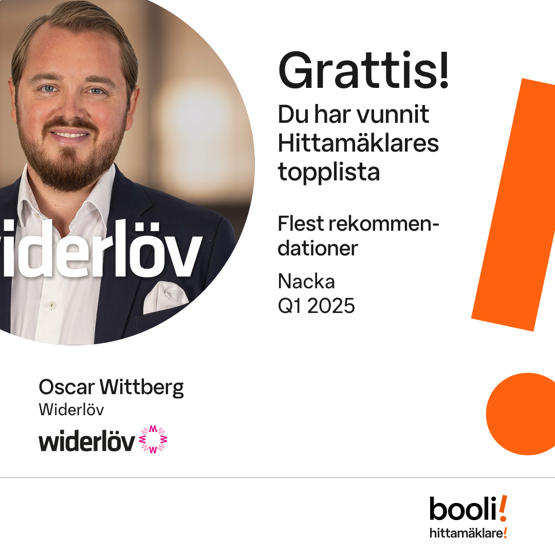 Statistik för publicerade bostäder, försäljningar och omdömen baseras på data från Booli och Hittamäklare. Statistiken för försäljningar avser inrapporterade och verifierade slutpriser från mäklare eller av Booli inhämtade och verifierade slutpriser. Statistiken för publicerade bostäder baseras på information som publicerats på Booli.se. Statistik för omdömen och rekommendationer baseras på omdömen från säljare som lämnats via Booli och Hittamäklare.