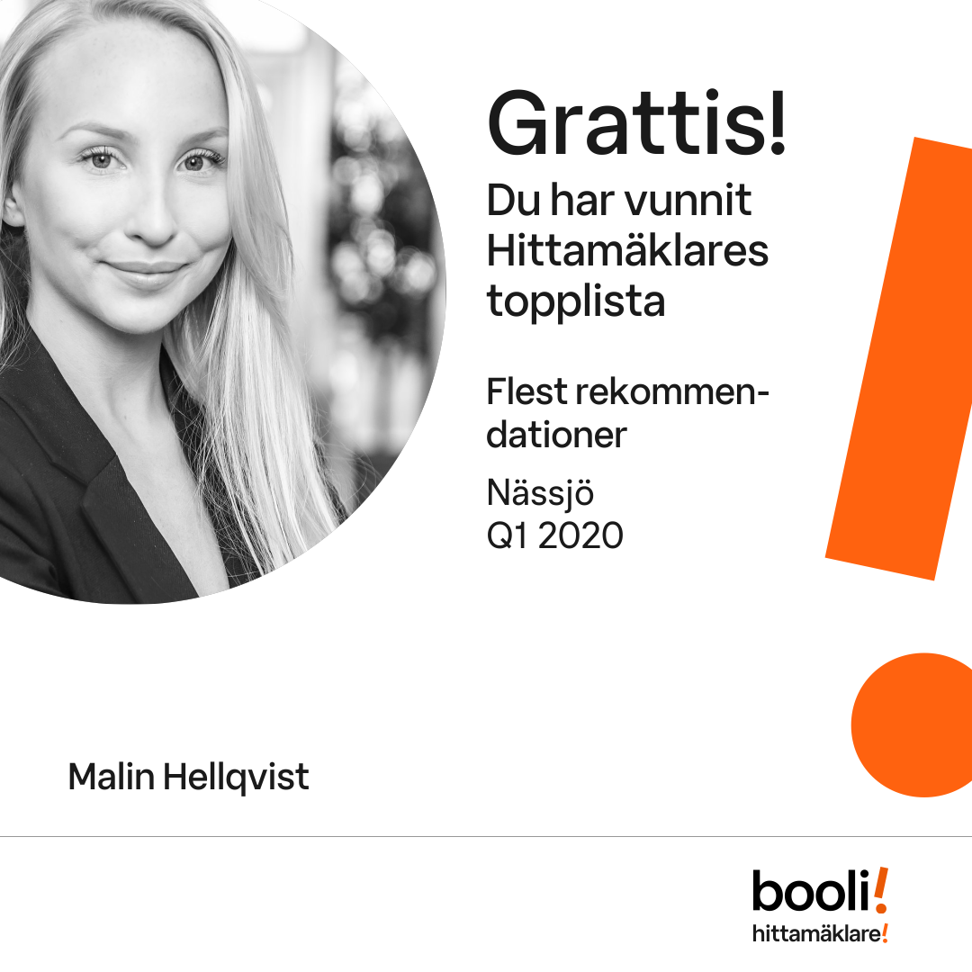 Statistik för publicerade bostäder, försäljningar och omdömen baseras på data från Booli och Hittamäklare. Statistiken för försäljningar avser inrapporterade och verifierade slutpriser från mäklare eller av Booli inhämtade och verifierade slutpriser. Statistiken för publicerade bostäder baseras på information som publicerats på Booli.se. Statistik för omdömen och rekommendationer baseras på omdömen från säljare som lämnats via Booli och Hittamäklare.