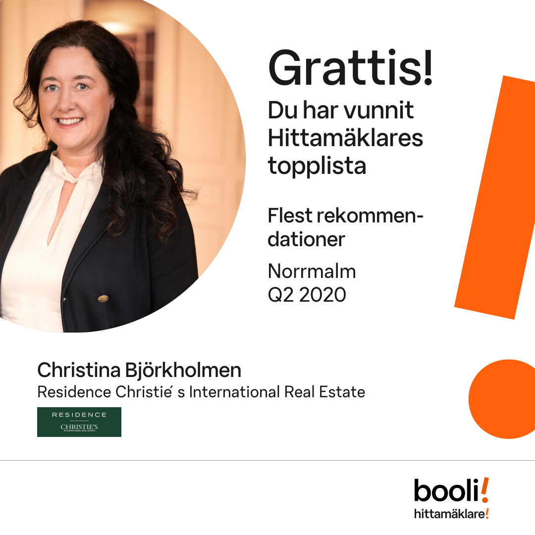 Statistik för publicerade bostäder, försäljningar och omdömen baseras på data från Booli och Hittamäklare. Statistiken för försäljningar avser inrapporterade och verifierade slutpriser från mäklare eller av Booli inhämtade och verifierade slutpriser. Statistiken för publicerade bostäder baseras på information som publicerats på Booli.se. Statistik för omdömen och rekommendationer baseras på omdömen från säljare som lämnats via Booli och Hittamäklare.