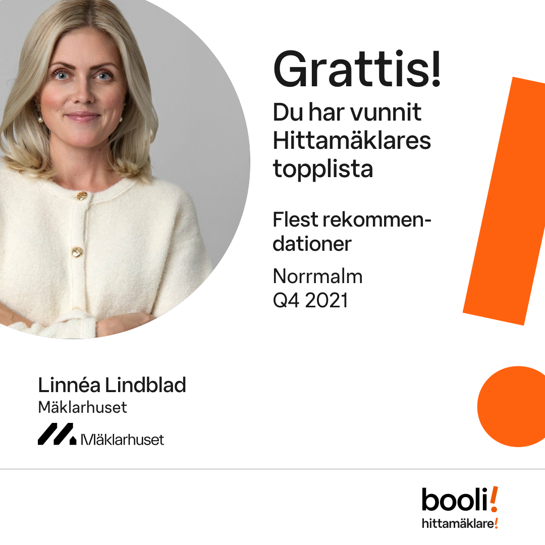 Statistik för publicerade bostäder, försäljningar och omdömen baseras på data från Booli och Hittamäklare. Statistiken för försäljningar avser inrapporterade och verifierade slutpriser från mäklare eller av Booli inhämtade och verifierade slutpriser. Statistiken för publicerade bostäder baseras på information som publicerats på Booli.se. Statistik för omdömen och rekommendationer baseras på omdömen från säljare som lämnats via Booli och Hittamäklare.