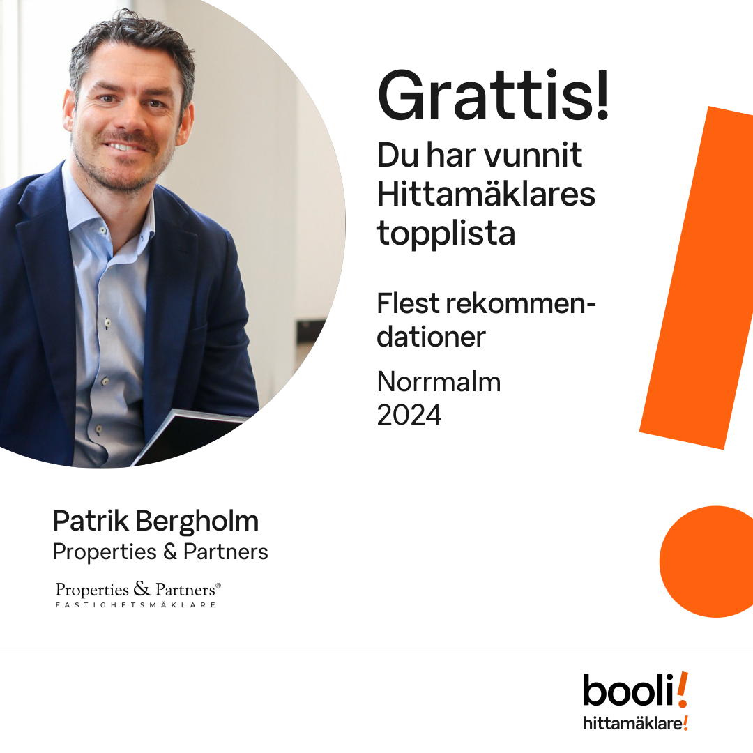 Statistik för publicerade bostäder, försäljningar och omdömen baseras på data från Booli och Hittamäklare. Statistiken för försäljningar avser inrapporterade och verifierade slutpriser från mäklare eller av Booli inhämtade och verifierade slutpriser. Statistiken för publicerade bostäder baseras på information som publicerats på Booli.se. Statistik för omdömen och rekommendationer baseras på omdömen från säljare som lämnats via Booli och Hittamäklare.