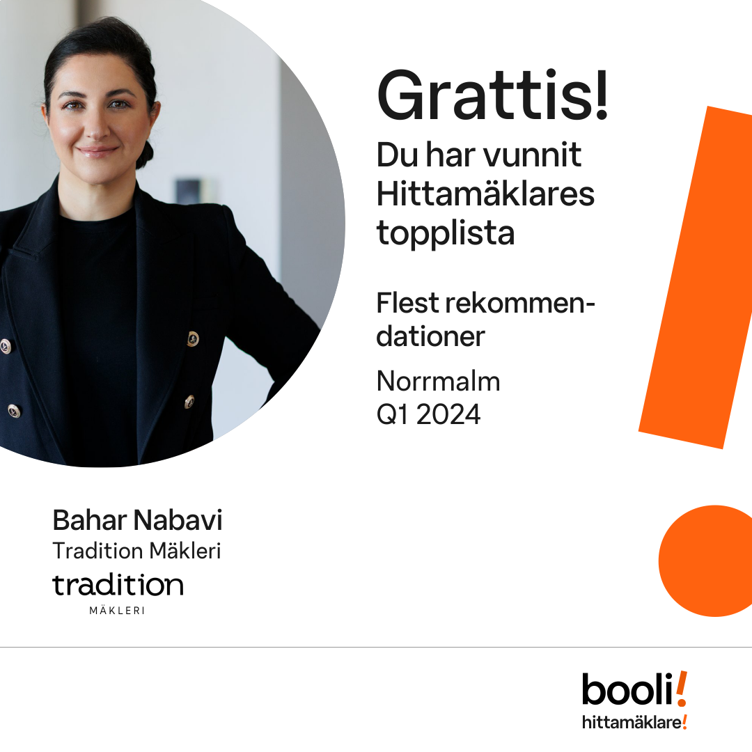 Statistik för publicerade bostäder, försäljningar och omdömen baseras på data från Booli och Hittamäklare. Statistiken för försäljningar avser inrapporterade och verifierade slutpriser från mäklare eller av Booli inhämtade och verifierade slutpriser. Statistiken för publicerade bostäder baseras på information som publicerats på Booli.se. Statistik för omdömen och rekommendationer baseras på omdömen från säljare som lämnats via Booli och Hittamäklare.