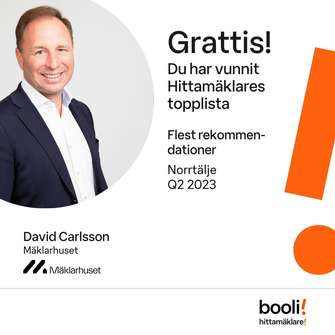 Statistik för publicerade bostäder, försäljningar och omdömen baseras på data från Booli. Statistiken för försäljningar avser inrapporterade och verifierade slutpriser från mäklare eller av Booli inhämtade och verifierade slutpriser. Statistiken för publicerade bostäder baseras på information som publicerats på Booli.se. Statistik för omdömen och rekommendationer baseras på omdömen från säljare som lämnats via Booli.