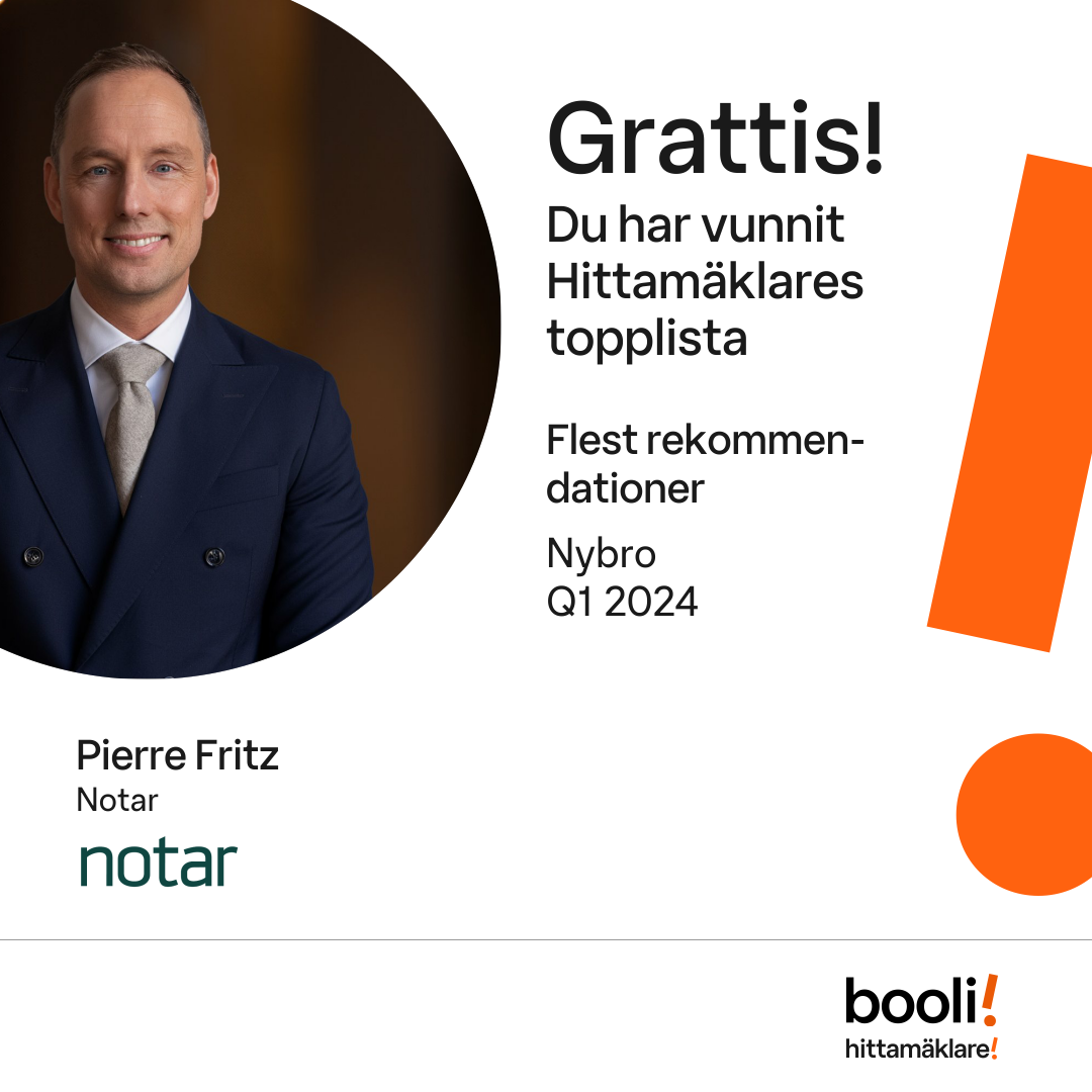 Statistik för publicerade bostäder, försäljningar och omdömen baseras på data från Booli och Hittamäklare. Statistiken för försäljningar avser inrapporterade och verifierade slutpriser från mäklare eller av Booli inhämtade och verifierade slutpriser. Statistiken för publicerade bostäder baseras på information som publicerats på Booli.se. Statistik för omdömen och rekommendationer baseras på omdömen från säljare som lämnats via Booli och Hittamäklare.