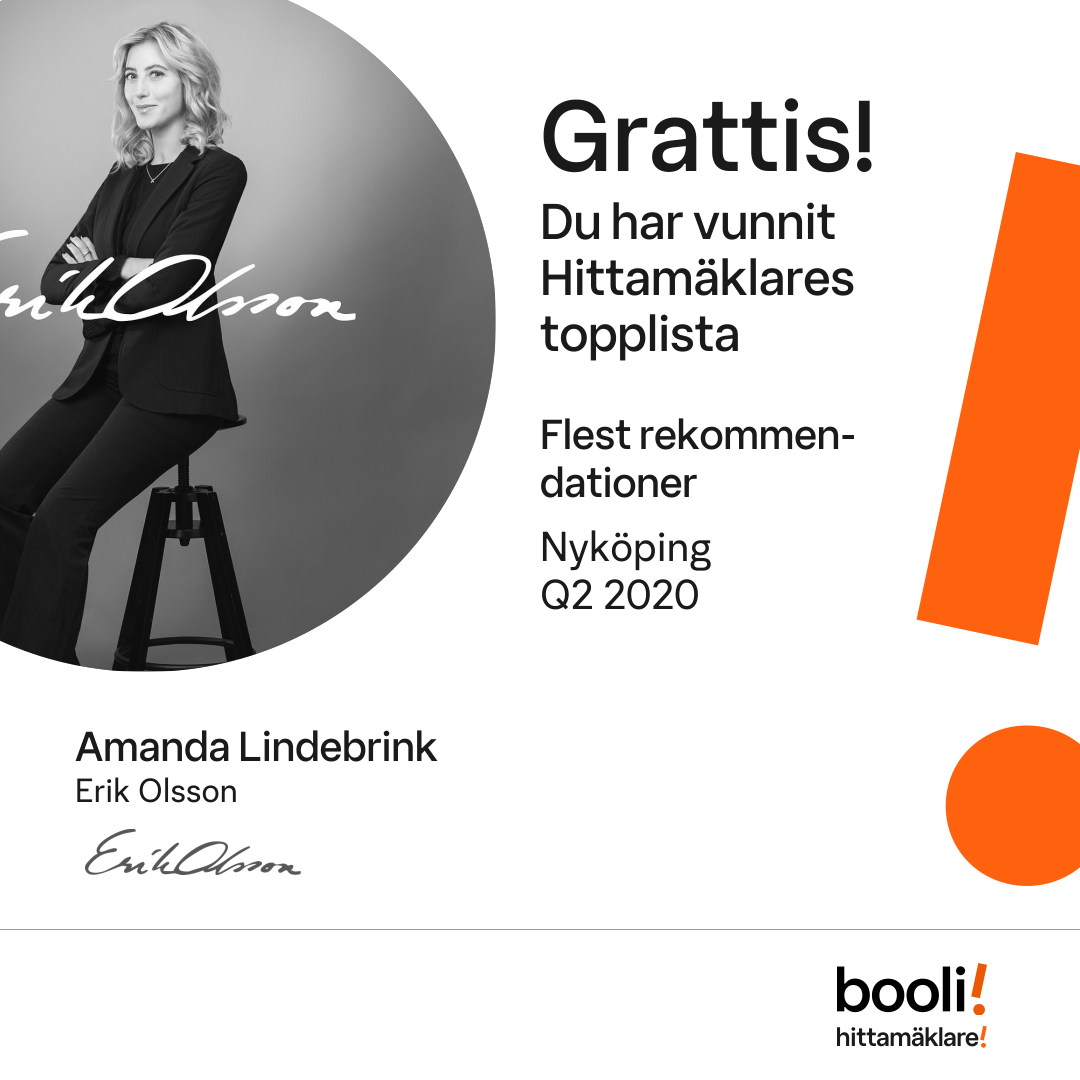 Statistik för publicerade bostäder, försäljningar och omdömen baseras på data från Booli och Hittamäklare. Statistiken för försäljningar avser inrapporterade och verifierade slutpriser från mäklare eller av Booli inhämtade och verifierade slutpriser. Statistiken för publicerade bostäder baseras på information som publicerats på Booli.se. Statistik för omdömen och rekommendationer baseras på omdömen från säljare som lämnats via Booli och Hittamäklare.