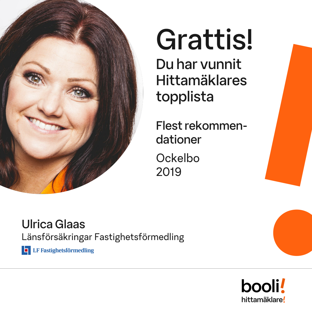 Statistik för publicerade bostäder, försäljningar och omdömen baseras på data från Booli och Hittamäklare. Statistiken för försäljningar avser inrapporterade och verifierade slutpriser från mäklare eller av Booli inhämtade och verifierade slutpriser. Statistiken för publicerade bostäder baseras på information som publicerats på Booli.se. Statistik för omdömen och rekommendationer baseras på omdömen från säljare som lämnats via Booli och Hittamäklare.