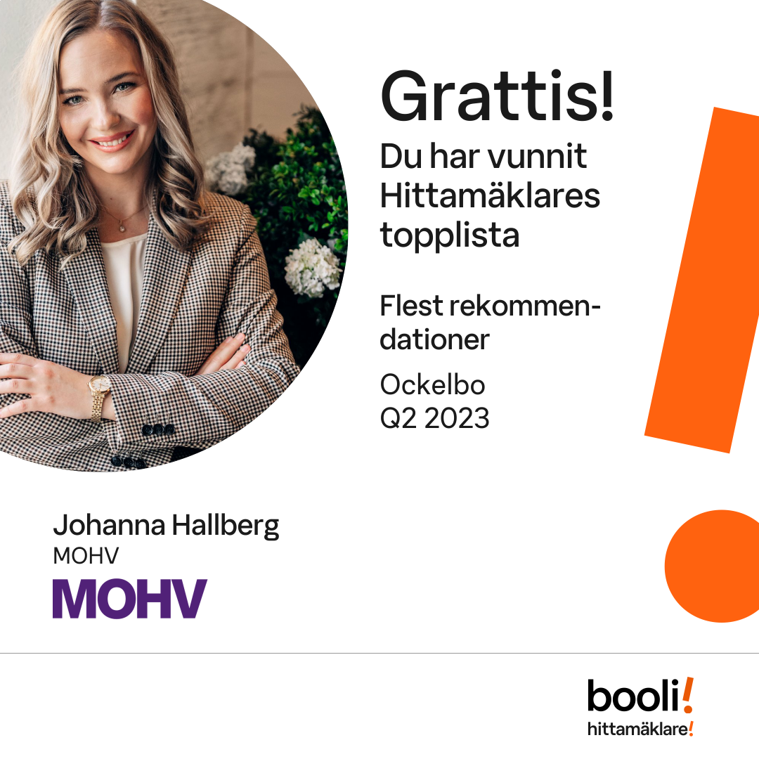 Statistik för publicerade bostäder, försäljningar och omdömen baseras på data från Booli och Hittamäklare. Statistiken för försäljningar avser inrapporterade och verifierade slutpriser från mäklare eller av Booli inhämtade och verifierade slutpriser. Statistiken för publicerade bostäder baseras på information som publicerats på Booli.se. Statistik för omdömen och rekommendationer baseras på omdömen från säljare som lämnats via Booli och Hittamäklare.