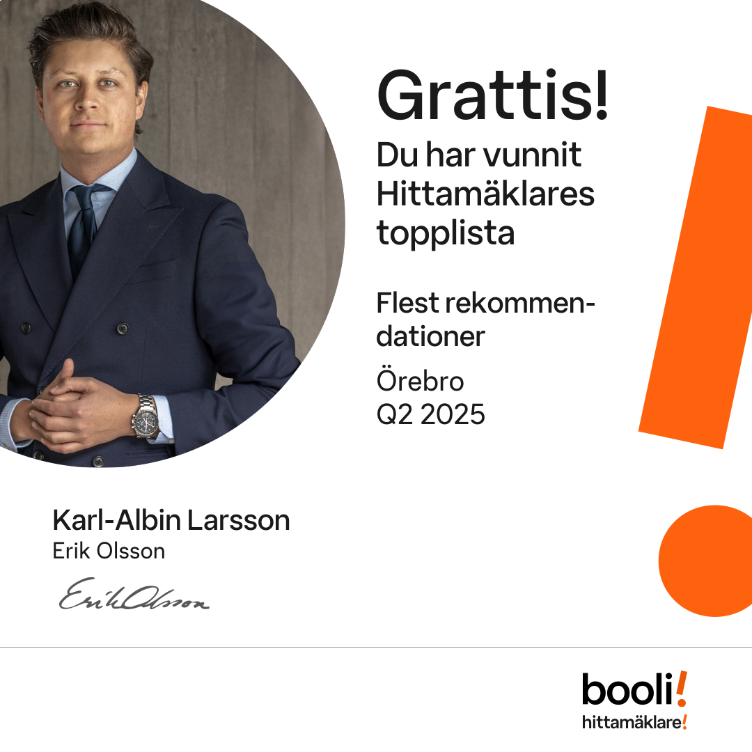 Statistik för publicerade bostäder, försäljningar och omdömen baseras på data från Booli och Hittamäklare. Statistiken för försäljningar avser inrapporterade och verifierade slutpriser från mäklare eller av Booli inhämtade och verifierade slutpriser. Statistiken för publicerade bostäder baseras på information som publicerats på Booli.se. Statistik för omdömen och rekommendationer baseras på omdömen från säljare som lämnats via Booli och Hittamäklare.