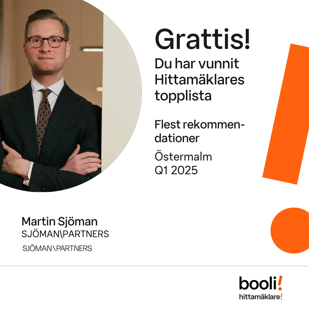 Statistik för publicerade bostäder, försäljningar och omdömen baseras på data från Booli och Hittamäklare. Statistiken för försäljningar avser inrapporterade och verifierade slutpriser från mäklare eller av Booli inhämtade och verifierade slutpriser. Statistiken för publicerade bostäder baseras på information som publicerats på Booli.se. Statistik för omdömen och rekommendationer baseras på omdömen från säljare som lämnats via Booli och Hittamäklare.