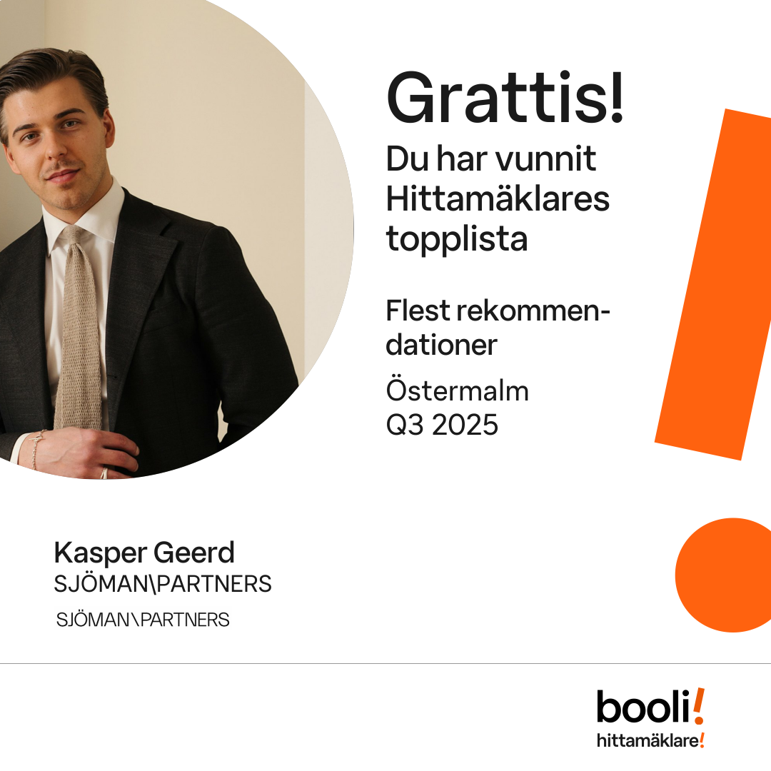 Statistik för publicerade bostäder, försäljningar och omdömen baseras på data från Booli och Hittamäklare. Statistiken för försäljningar avser inrapporterade och verifierade slutpriser från mäklare eller av Booli inhämtade och verifierade slutpriser. Statistiken för publicerade bostäder baseras på information som publicerats på Booli.se. Statistik för omdömen och rekommendationer baseras på omdömen från säljare som lämnats via Booli och Hittamäklare.