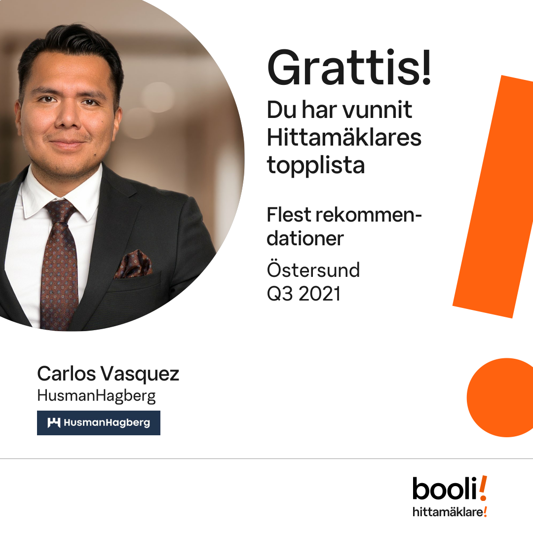 Statistik för publicerade bostäder, försäljningar och omdömen baseras på data från Booli och Hittamäklare. Statistiken för försäljningar avser inrapporterade och verifierade slutpriser från mäklare eller av Booli inhämtade och verifierade slutpriser. Statistiken för publicerade bostäder baseras på information som publicerats på Booli.se. Statistik för omdömen och rekommendationer baseras på omdömen från säljare som lämnats via Booli och Hittamäklare.