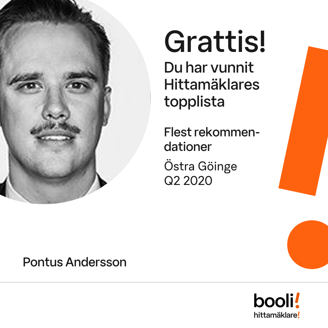 Statistik för publicerade bostäder, försäljningar och omdömen baseras på data från Booli och Hittamäklare. Statistiken för försäljningar avser inrapporterade och verifierade slutpriser från mäklare eller av Booli inhämtade och verifierade slutpriser. Statistiken för publicerade bostäder baseras på information som publicerats på Booli.se. Statistik för omdömen och rekommendationer baseras på omdömen från säljare som lämnats via Booli och Hittamäklare.