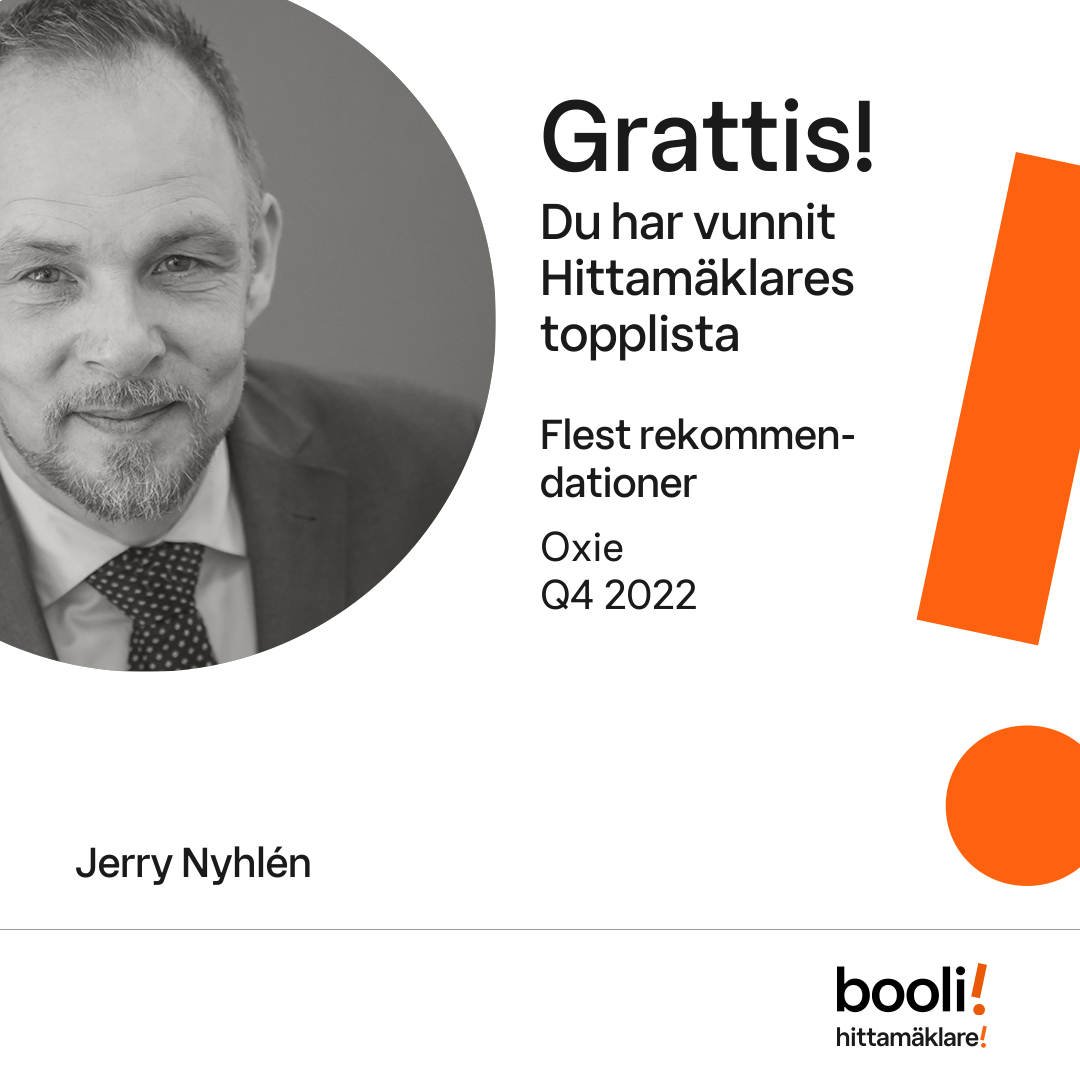 Statistik för publicerade bostäder, försäljningar och omdömen baseras på data från Booli och Hittamäklare. Statistiken för försäljningar avser inrapporterade och verifierade slutpriser från mäklare eller av Booli inhämtade och verifierade slutpriser. Statistiken för publicerade bostäder baseras på information som publicerats på Booli.se. Statistik för omdömen och rekommendationer baseras på omdömen från säljare som lämnats via Booli och Hittamäklare.