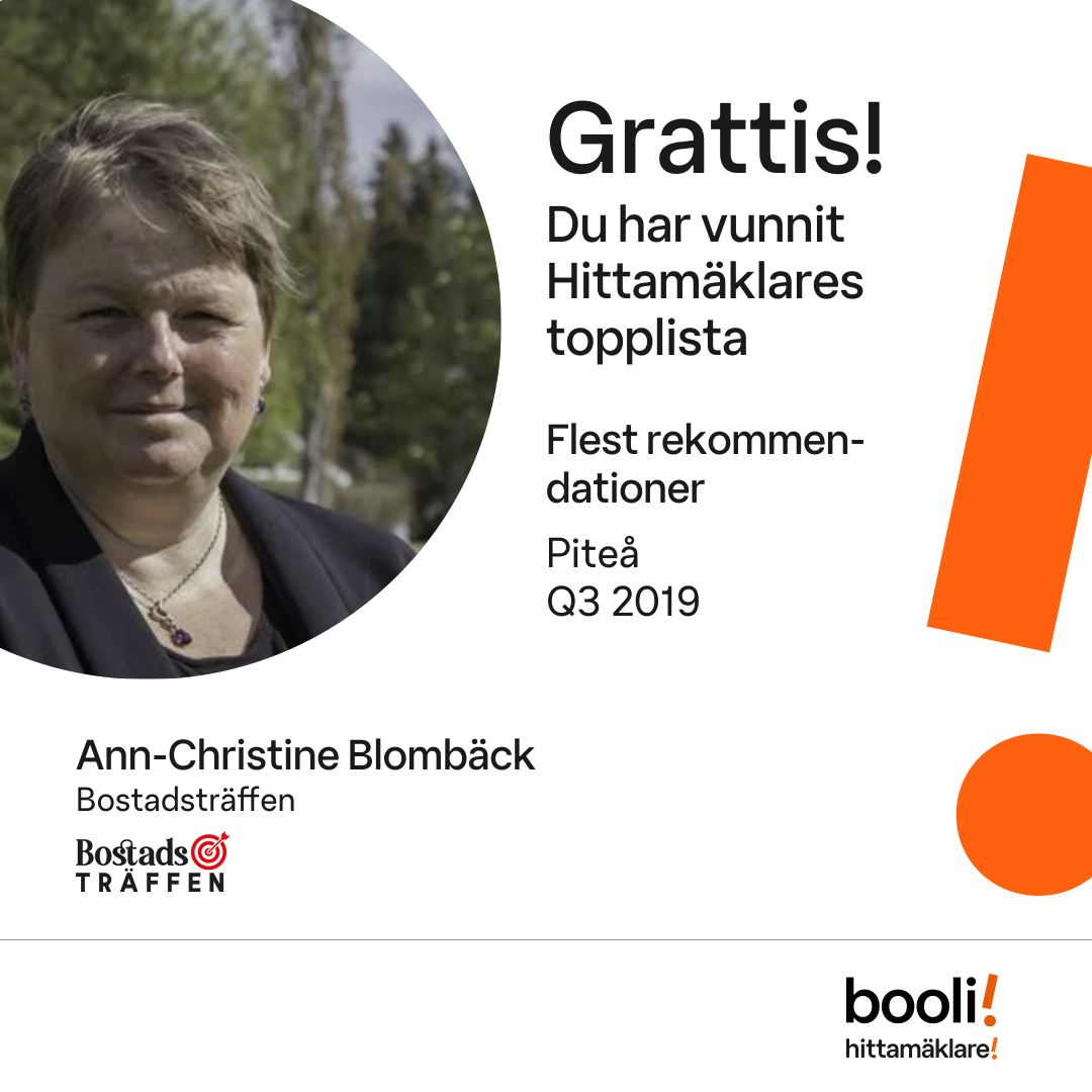 Statistik för publicerade bostäder, försäljningar och omdömen baseras på data från Booli och Hittamäklare. Statistiken för försäljningar avser inrapporterade och verifierade slutpriser från mäklare eller av Booli inhämtade och verifierade slutpriser. Statistiken för publicerade bostäder baseras på information som publicerats på Booli.se. Statistik för omdömen och rekommendationer baseras på omdömen från säljare som lämnats via Booli och Hittamäklare.