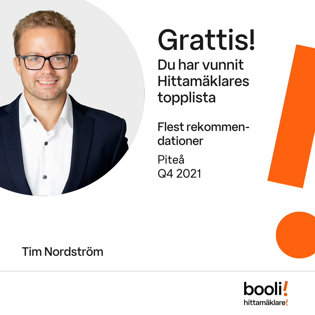 Statistik för publicerade bostäder, försäljningar och omdömen baseras på data från Booli och Hittamäklare. Statistiken för försäljningar avser inrapporterade och verifierade slutpriser från mäklare eller av Booli inhämtade och verifierade slutpriser. Statistiken för publicerade bostäder baseras på information som publicerats på Booli.se. Statistik för omdömen och rekommendationer baseras på omdömen från säljare som lämnats via Booli och Hittamäklare.
