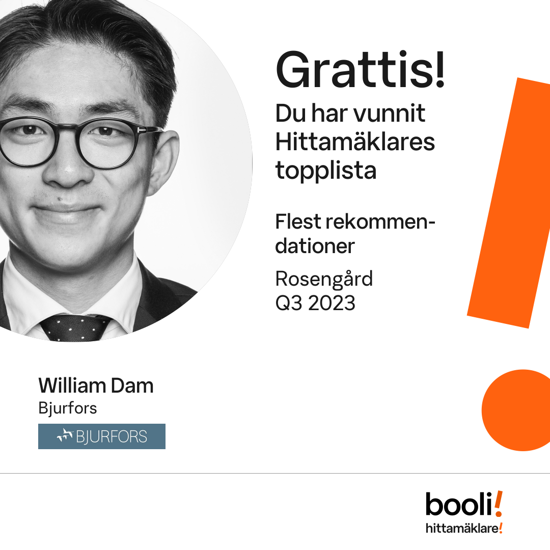 Statistik för publicerade bostäder, försäljningar och omdömen baseras på data från Booli och Hittamäklare. Statistiken för försäljningar avser inrapporterade och verifierade slutpriser från mäklare eller av Booli inhämtade och verifierade slutpriser. Statistiken för publicerade bostäder baseras på information som publicerats på Booli.se. Statistik för omdömen och rekommendationer baseras på omdömen från säljare som lämnats via Booli och Hittamäklare.