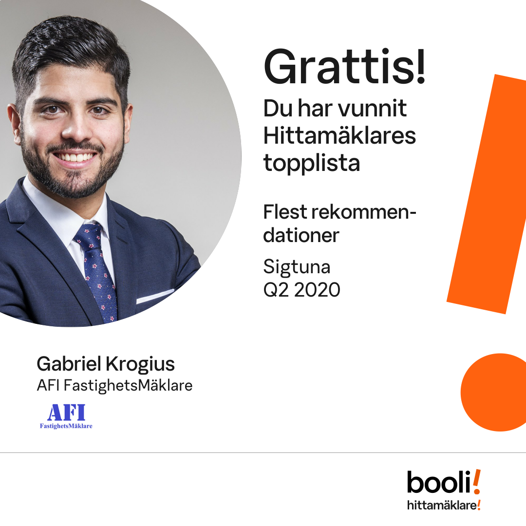 Statistik för publicerade bostäder, försäljningar och omdömen baseras på data från Booli och Hittamäklare. Statistiken för försäljningar avser inrapporterade och verifierade slutpriser från mäklare eller av Booli inhämtade och verifierade slutpriser. Statistiken för publicerade bostäder baseras på information som publicerats på Booli.se. Statistik för omdömen och rekommendationer baseras på omdömen från säljare som lämnats via Booli och Hittamäklare.