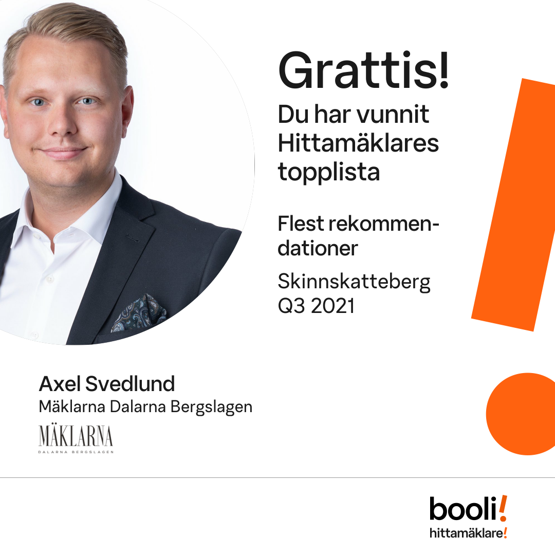 Statistik för publicerade bostäder, försäljningar och omdömen baseras på data från Booli och Hittamäklare. Statistiken för försäljningar avser inrapporterade och verifierade slutpriser från mäklare eller av Booli inhämtade och verifierade slutpriser. Statistiken för publicerade bostäder baseras på information som publicerats på Booli.se. Statistik för omdömen och rekommendationer baseras på omdömen från säljare som lämnats via Booli och Hittamäklare.