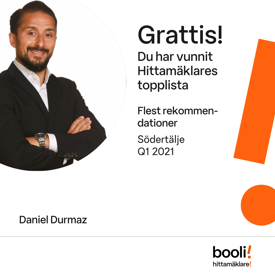 Statistik för publicerade bostäder, försäljningar och omdömen baseras på data från Booli och Hittamäklare. Statistiken för försäljningar avser inrapporterade och verifierade slutpriser från mäklare eller av Booli inhämtade och verifierade slutpriser. Statistiken för publicerade bostäder baseras på information som publicerats på Booli.se. Statistik för omdömen och rekommendationer baseras på omdömen från säljare som lämnats via Booli och Hittamäklare.