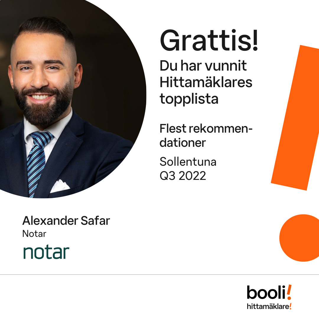 Statistik för publicerade bostäder, försäljningar och omdömen baseras på data från Booli och Hittamäklare. Statistiken för försäljningar avser inrapporterade och verifierade slutpriser från mäklare eller av Booli inhämtade och verifierade slutpriser. Statistiken för publicerade bostäder baseras på information som publicerats på Booli.se. Statistik för omdömen och rekommendationer baseras på omdömen från säljare som lämnats via Booli och Hittamäklare.