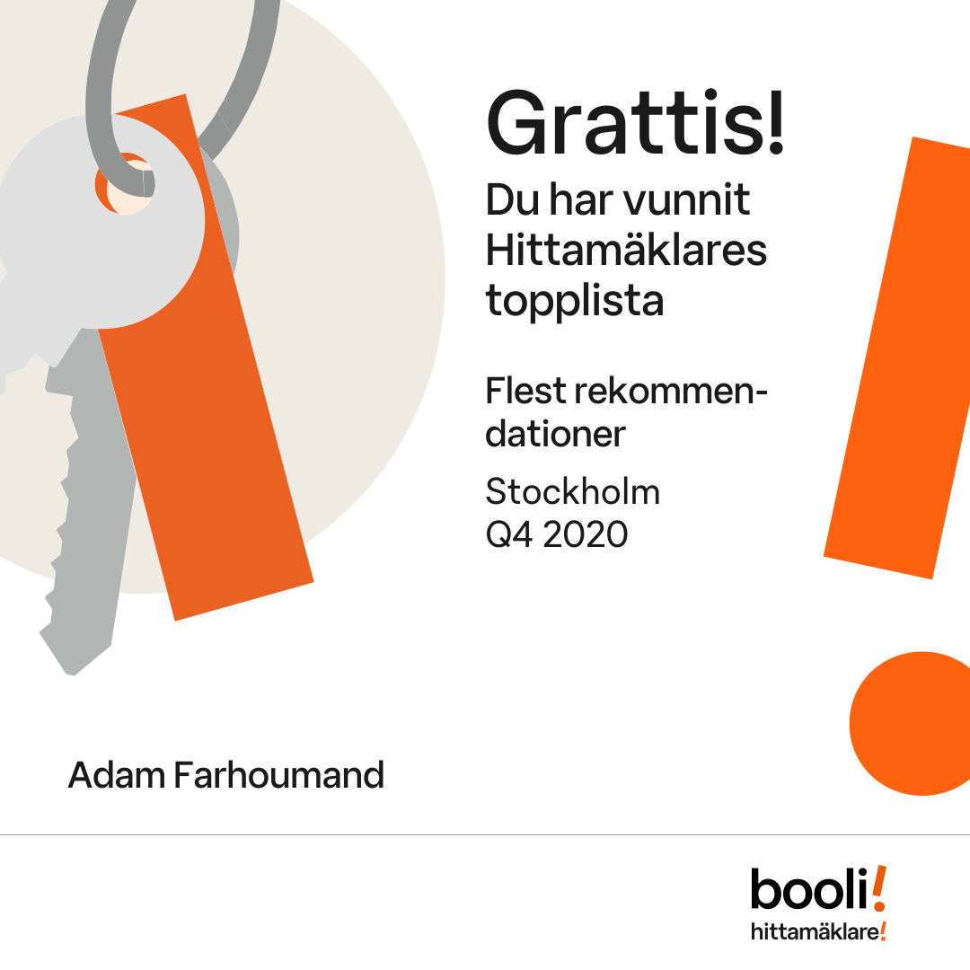 Statistik för publicerade bostäder, försäljningar och omdömen baseras på data från Booli och Hittamäklare. Statistiken för försäljningar avser inrapporterade och verifierade slutpriser från mäklare eller av Booli inhämtade och verifierade slutpriser. Statistiken för publicerade bostäder baseras på information som publicerats på Booli.se. Statistik för omdömen och rekommendationer baseras på omdömen från säljare som lämnats via Booli och Hittamäklare.