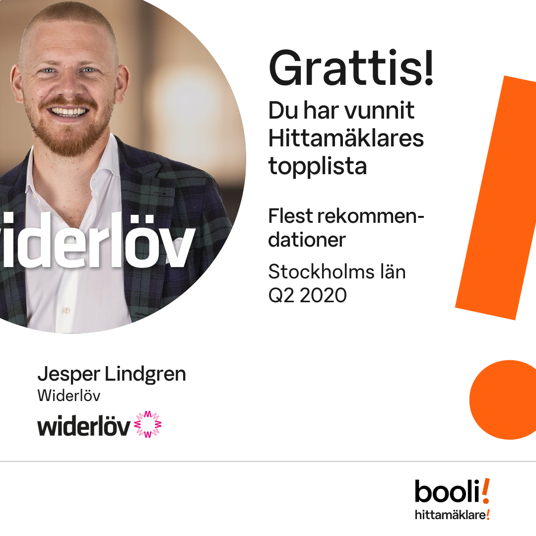 Statistik för publicerade bostäder, försäljningar och omdömen baseras på data från Booli och Hittamäklare. Statistiken för försäljningar avser inrapporterade och verifierade slutpriser från mäklare eller av Booli inhämtade och verifierade slutpriser. Statistiken för publicerade bostäder baseras på information som publicerats på Booli.se. Statistik för omdömen och rekommendationer baseras på omdömen från säljare som lämnats via Booli och Hittamäklare.
